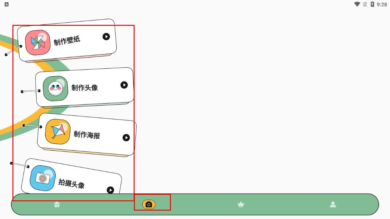 3、点击底部相机图标,可选择制作壁纸、头像、海报或拍摄头像等功能。