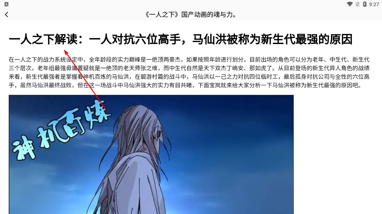 2、进入文章页,可浏览例如【关于马仙洪被称为新生代最强原因】的分析内容。