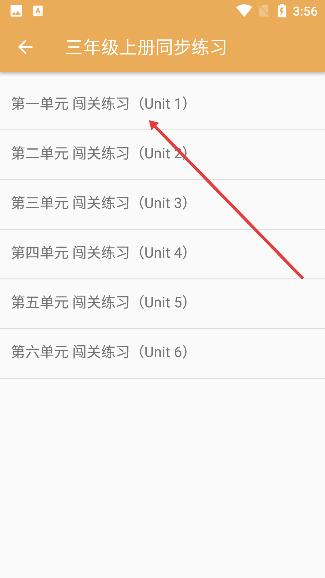 2、进入后点击【第一单元-闯关练习(Unit1)】。