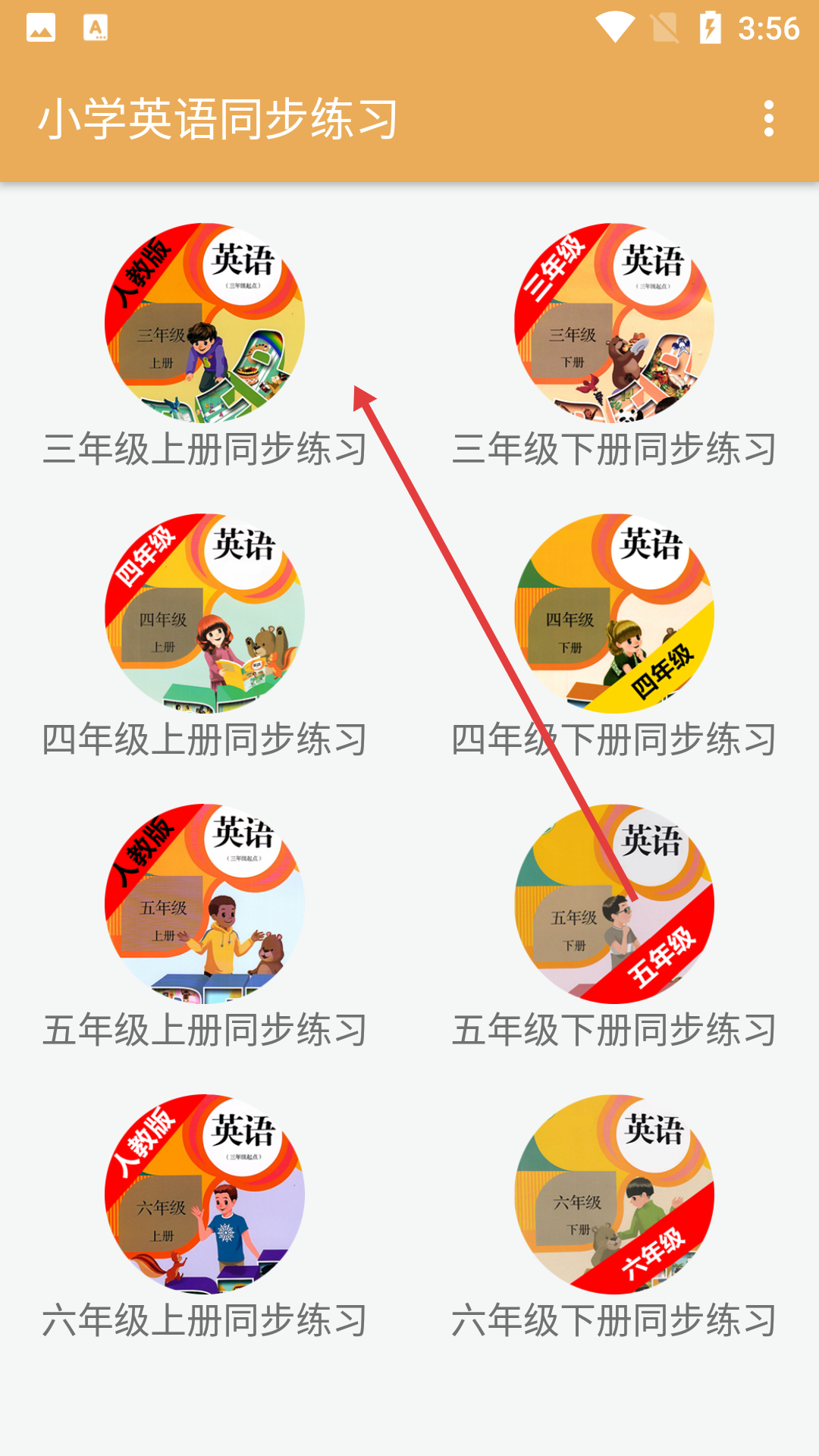 1、在“小学英语同步练习”页面选择【三年级上册同步练习】。