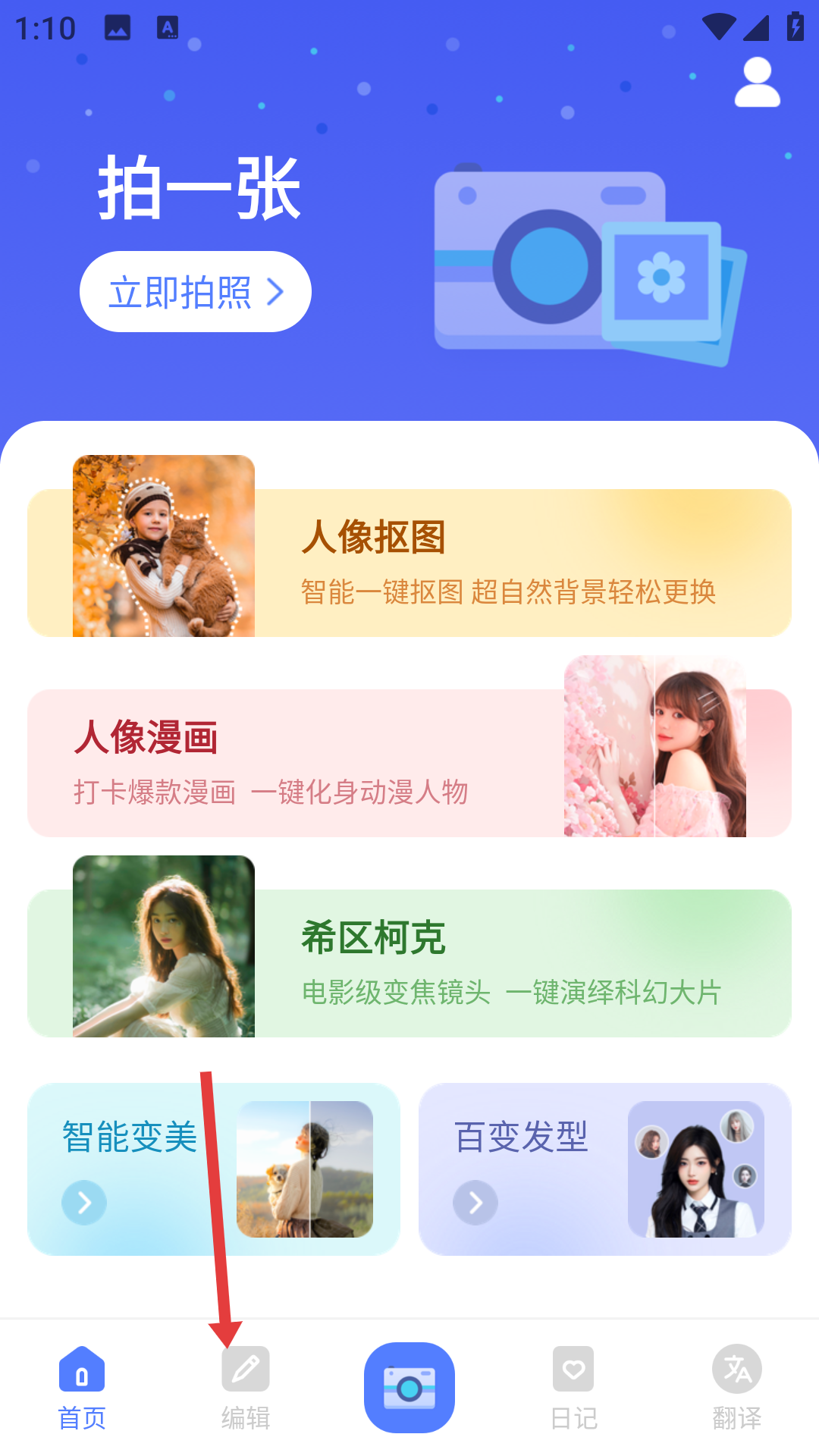 1、点击底部的【编辑】按钮,进入图片编辑页面,可使用多种编辑功能。