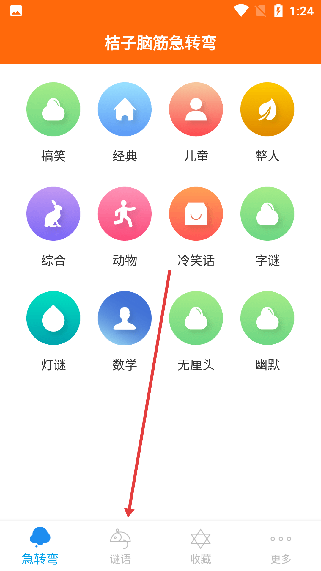 1、点击页面底部【谜语】选项,进入谜语分类页面。