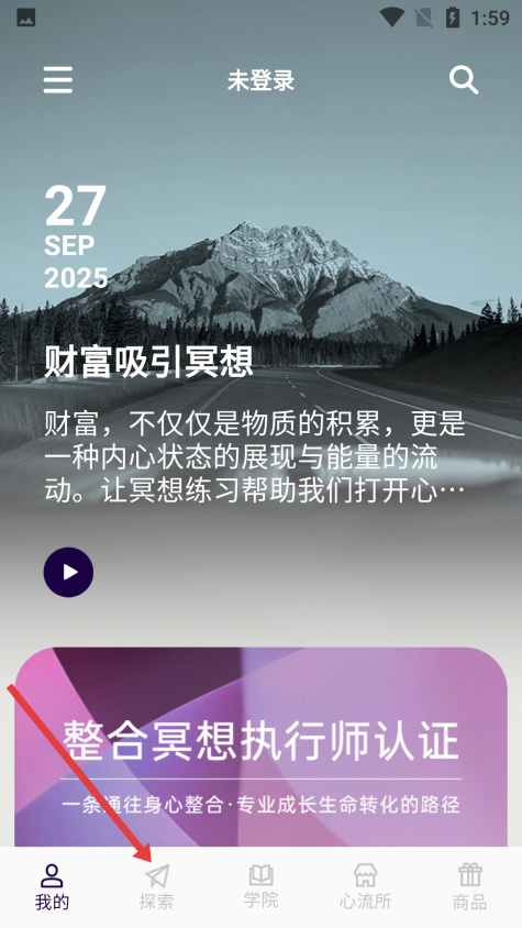 1、点击底部的【探索】按钮,进入探索页面,可查看冥想、活动等相关分类。