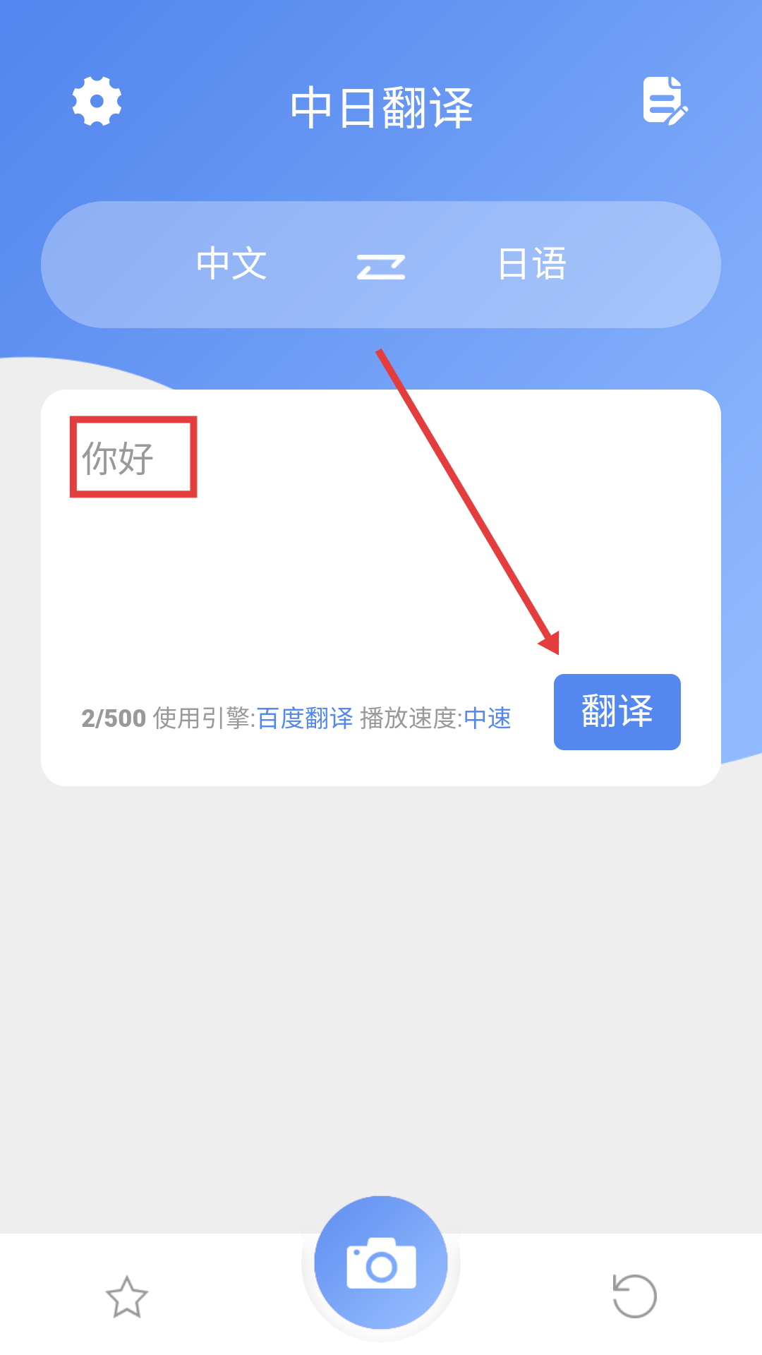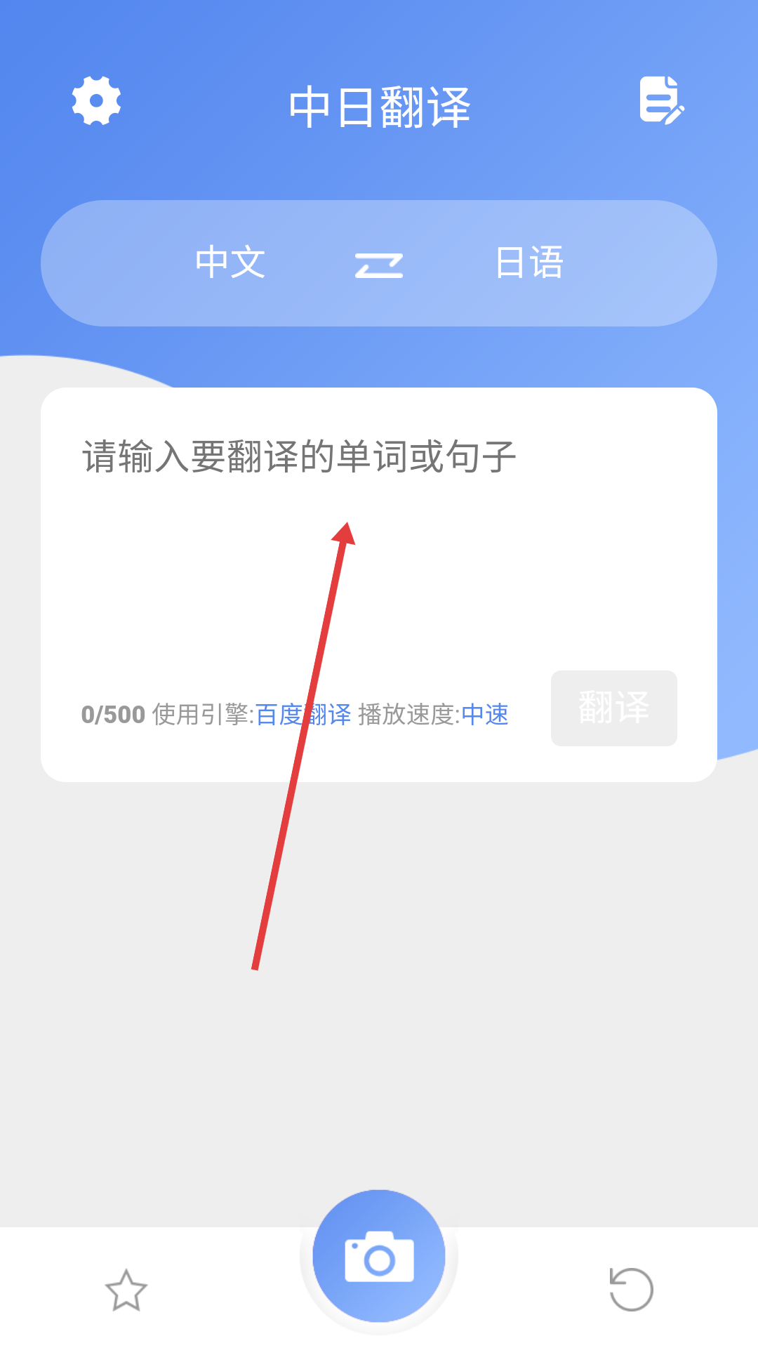 2、进入【中日翻译】页面,点击输入框准备输入要翻译的内容。