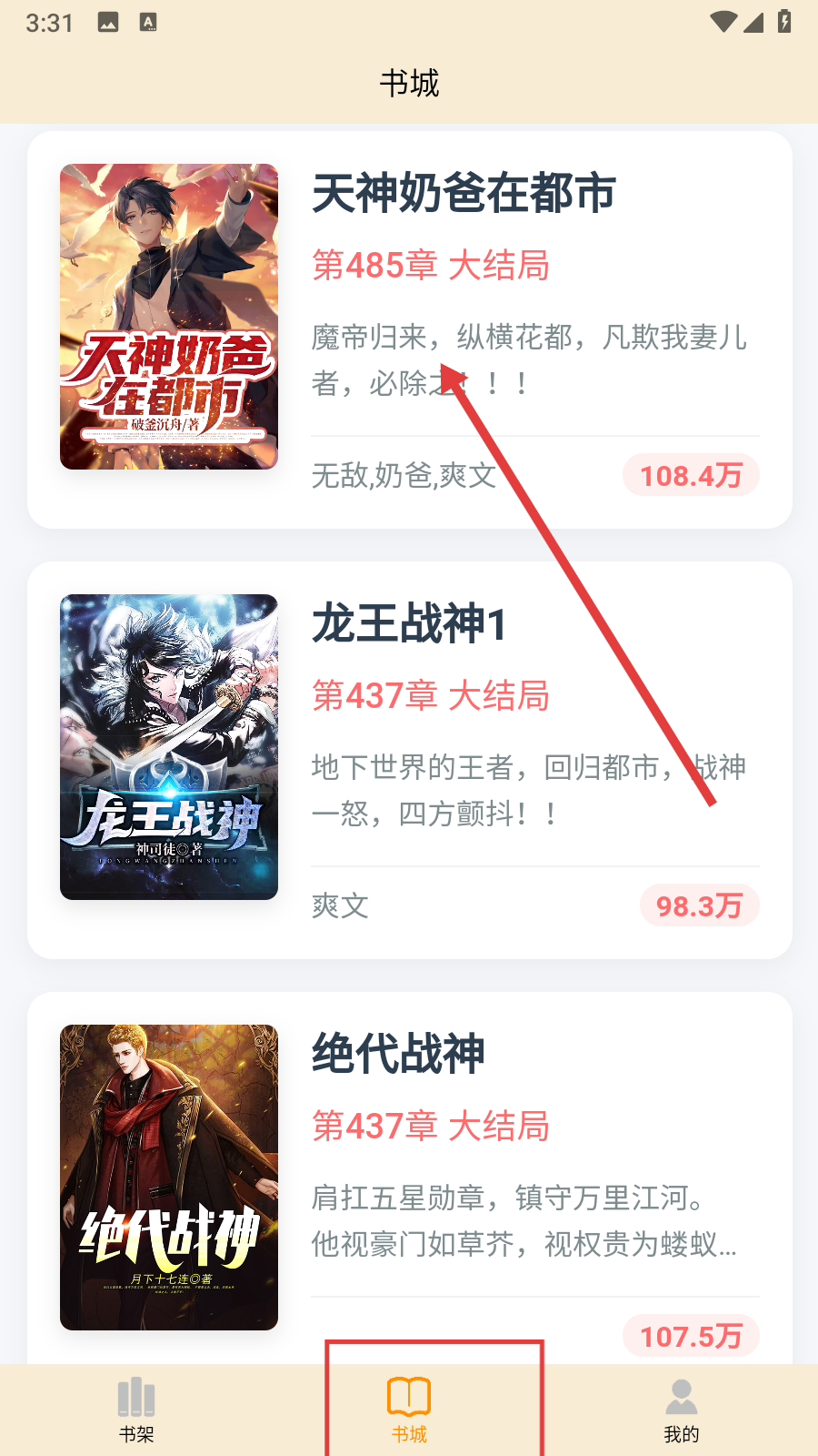 2、进入后在【书城】页面,可看到各类书籍,选择感兴趣的书籍点击进入。
