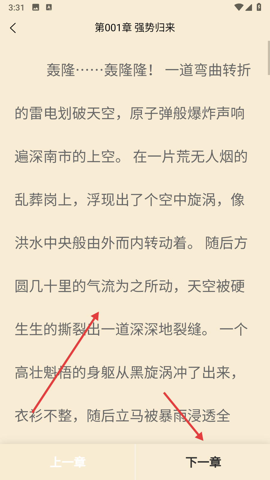 4、在阅读页面可查看章节内容,阅读完毕后点击【下一章】可继续阅读后续章节。