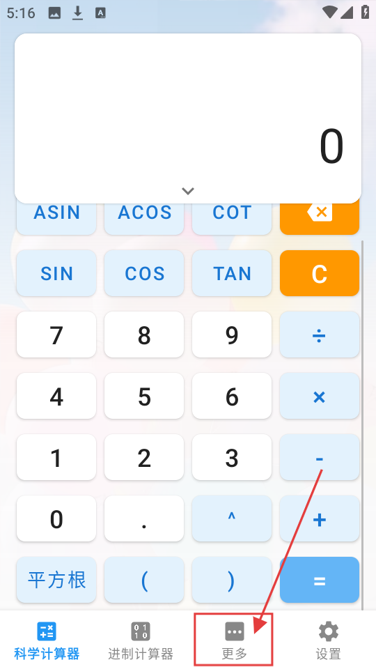 1、在计算器界面,点击底部的【更多】按钮,就能看到各种实用的计算工具选项啦。