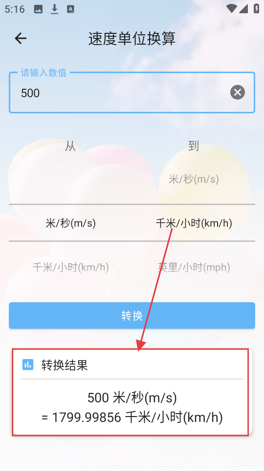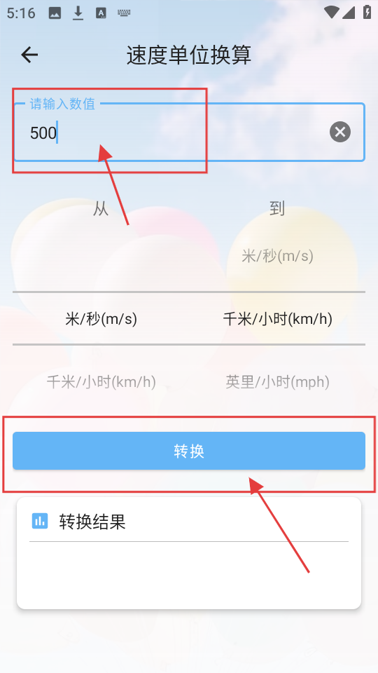 3、进入速度单位换算界面后,在输入框中输入要换算的数值,再点击【转换】按钮,就能进行换算啦。