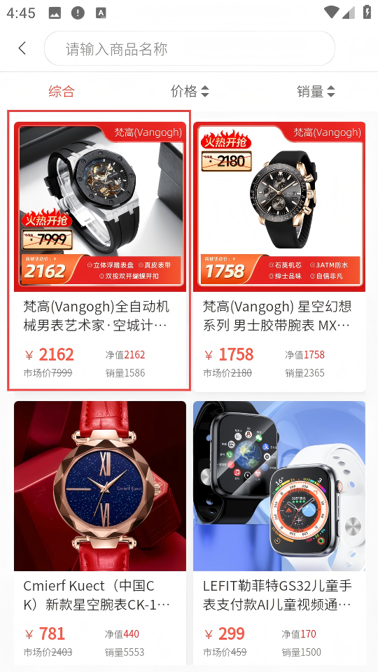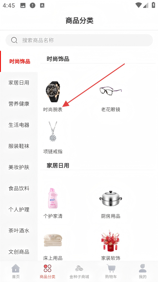 2、在商品分类页面,点击【时尚腕表】,进入腕表商品列表页。