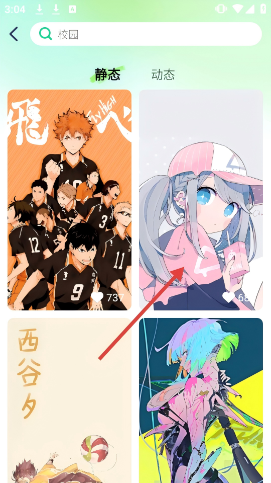 3、输入关键词后,在搜索结果页可选择【静态】或【动态】分类,点击喜欢的壁纸进入详情页。