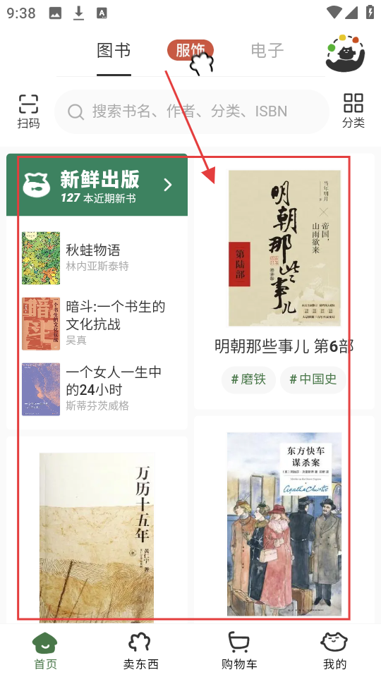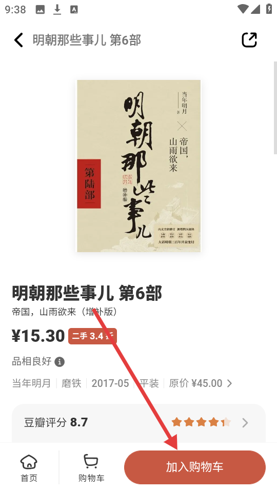 1、打开APP首页,挑选心仪的图书,比如【明朝那些事儿-第6部】,进入图书详情页面,准备购买啦。