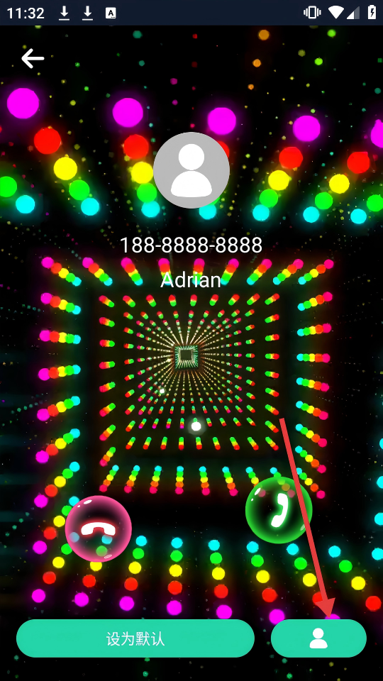3、在来电动画详情页,能看到动画效果及联系人信息,若要给特定联系人设置,点击右下角联系人图标,进行后续操作。