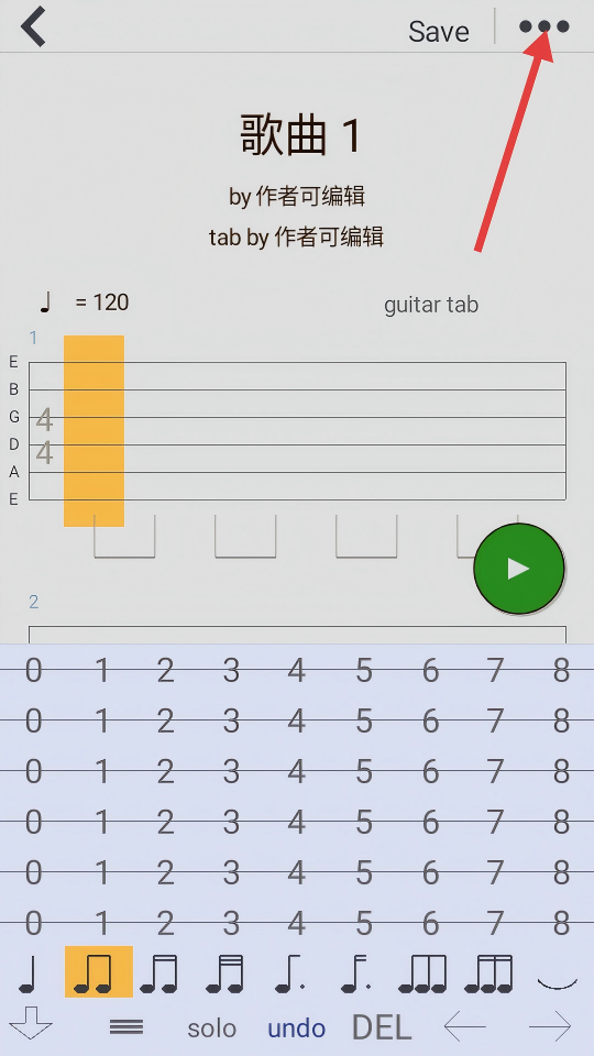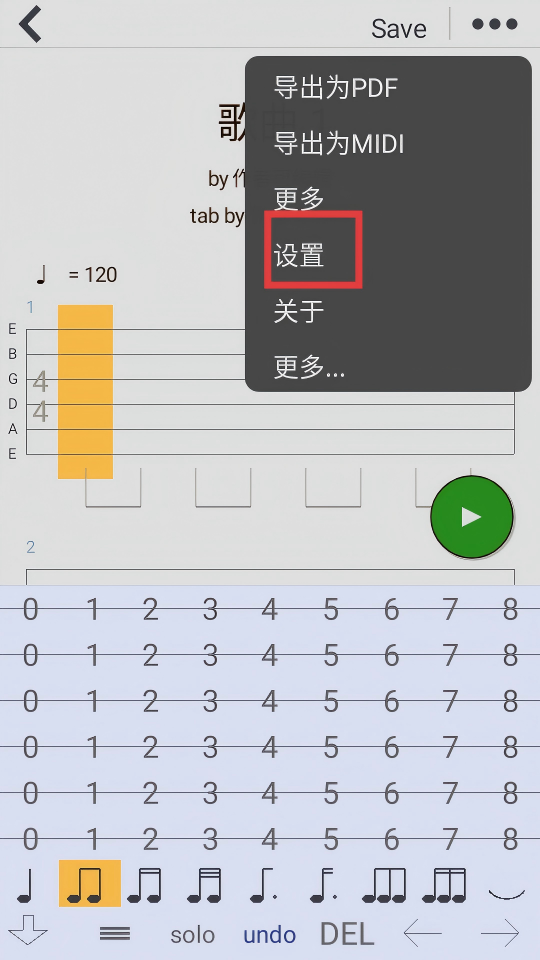 2、进入歌曲编辑页面后,点击右上角三个点的菜单按钮,能展开包含导出、设置等功能的选项列表。