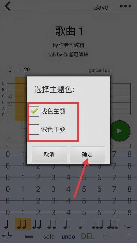 4、在设置的主题色选择弹窗中,挑选【浅色主题】或【深色主题】,点击【确定】,即可应用所选主题。