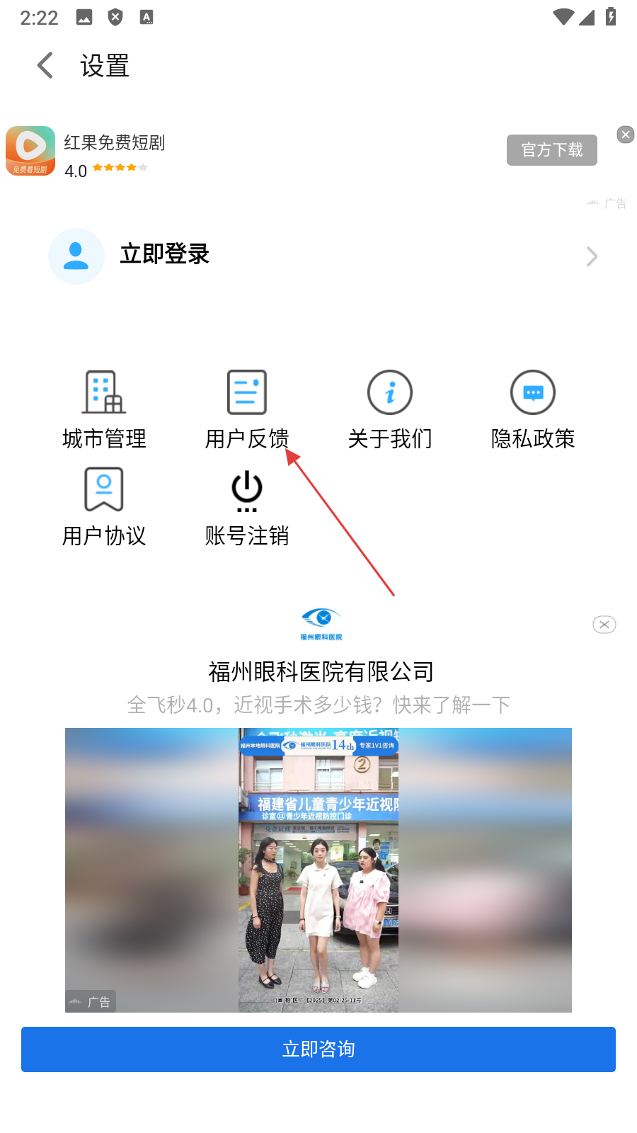2、在设置页面点击【用户反馈】,进入用户反馈页面。