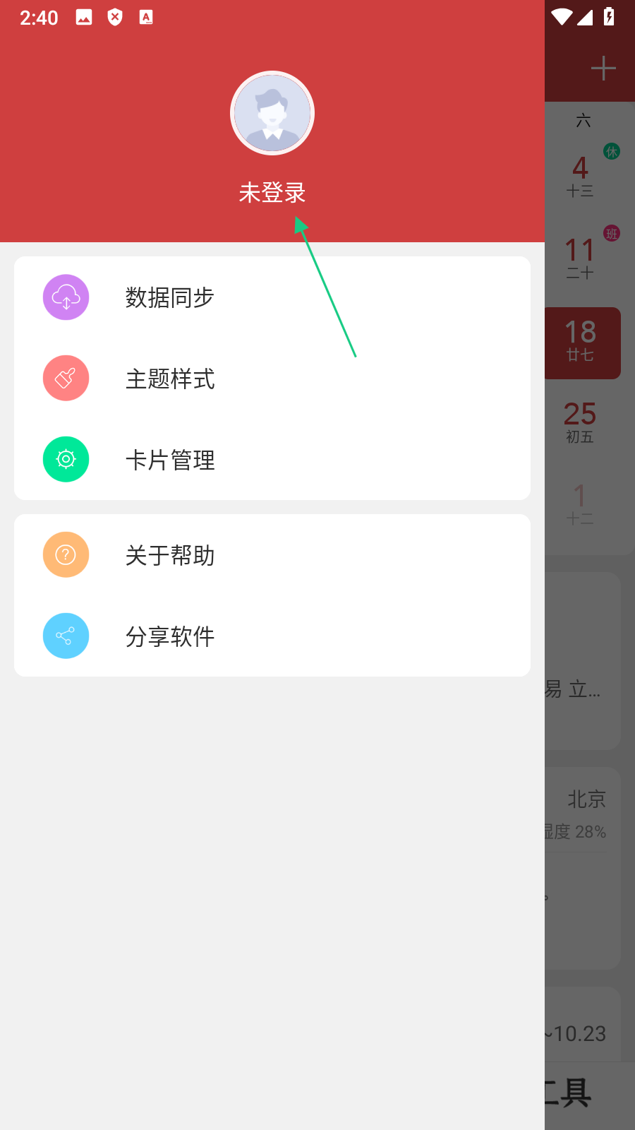 2、在菜单页面点击【未登录】,进入用户登录页面。