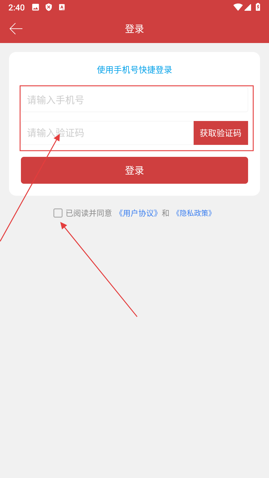 3、在登录页面,填写【信息勾选协议】后,准备登录。