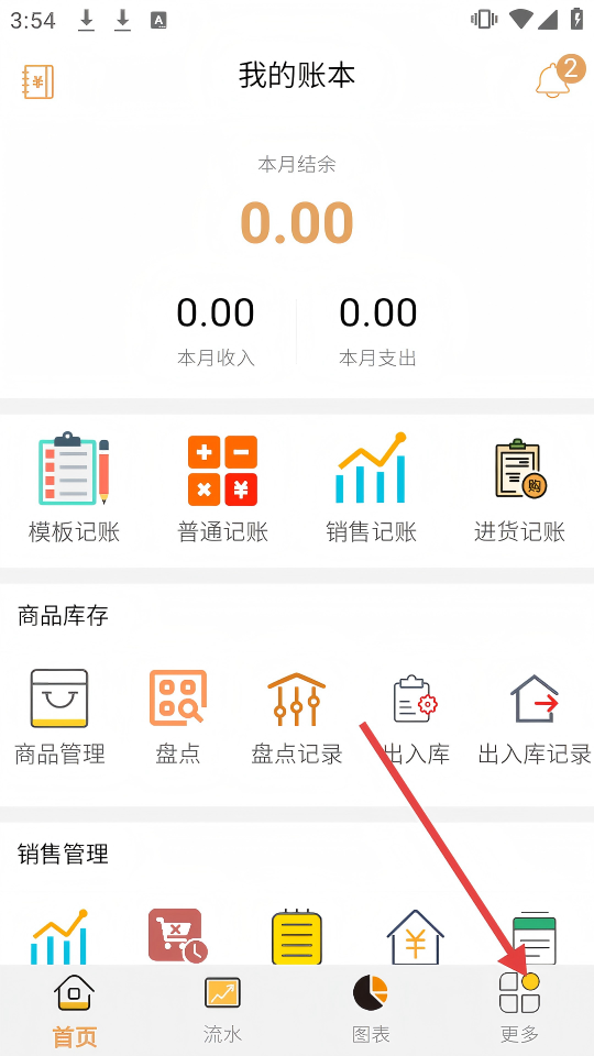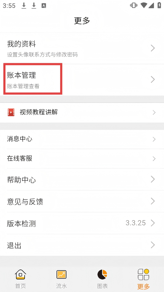 2、在“更多”页面,找到【账本管理】选项并点击,进入账本管理界面。