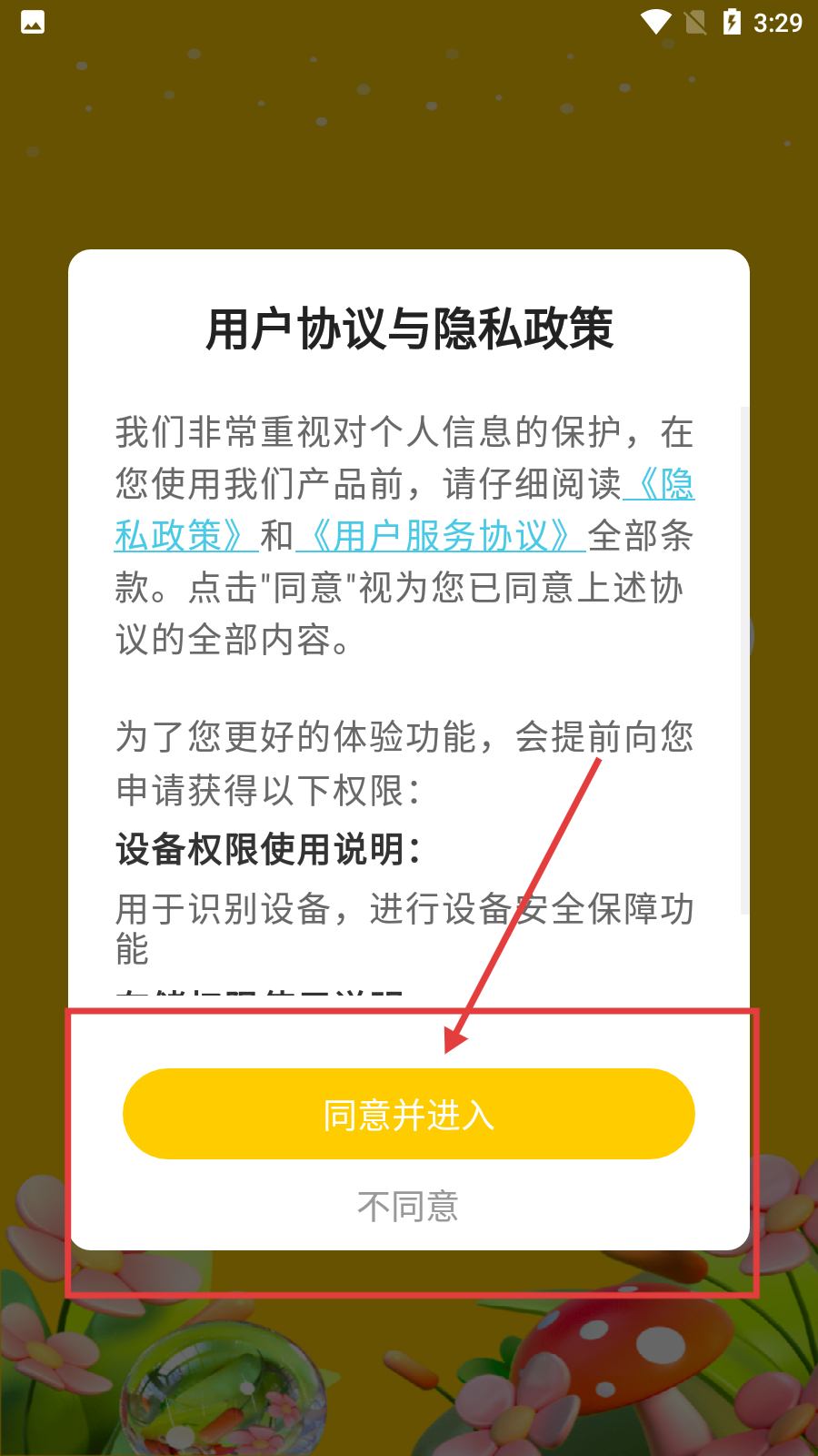1、打开软件后,会弹出【用户协议与隐私政策】提示,阅读后点击【同意并进入】按钮,即可继续使用软件。