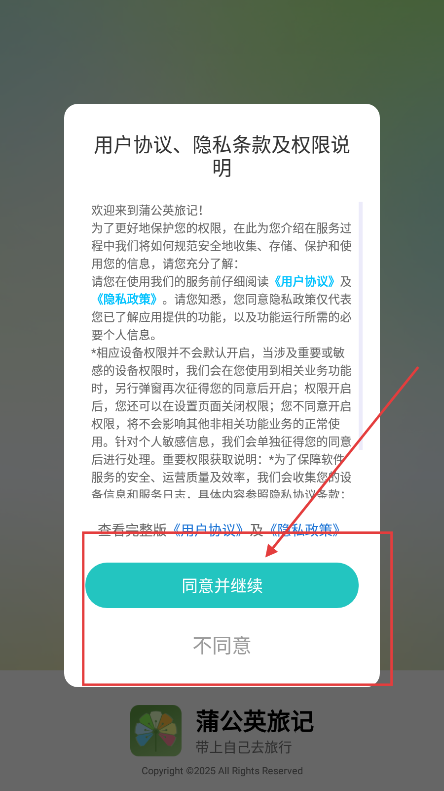 1、打开软件后,会弹出【用户协议、隐私条款及权限说明】弹窗,阅读后点击【同意并继续】,即可进入软件。