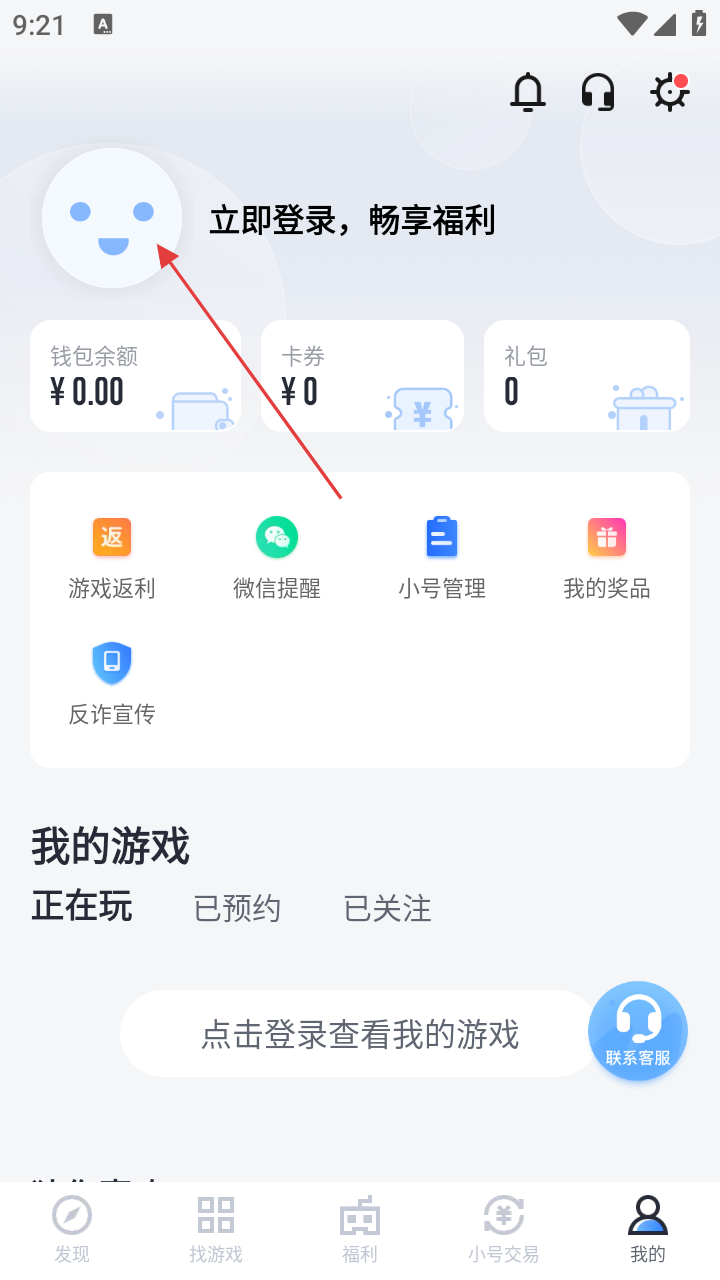 2、进入“我的”页面后,若要登录账号,点击头像区域,进入登录相关界面。