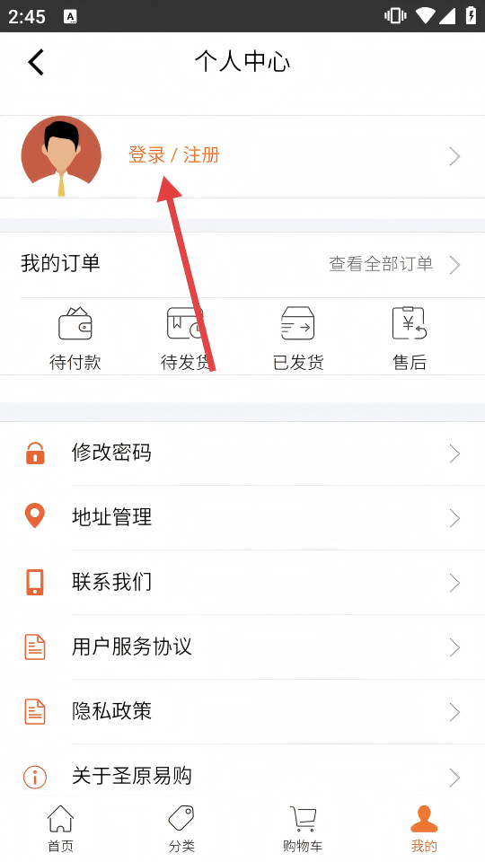 1、进入圣原易购首页,可看到产品订购等板块,点击底部【我的】,进入个人中心页面。