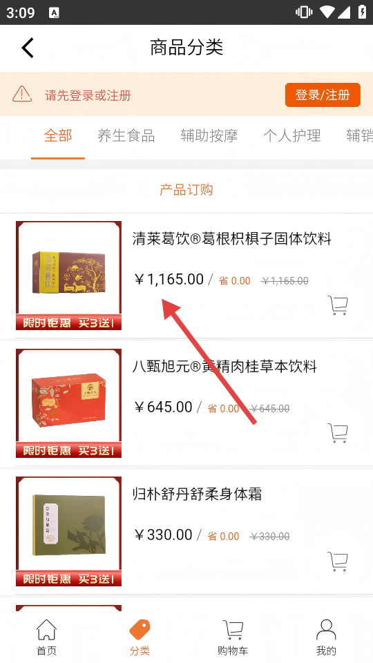 2、在商品分类页,找到目标商品,点击进入商品详情页。