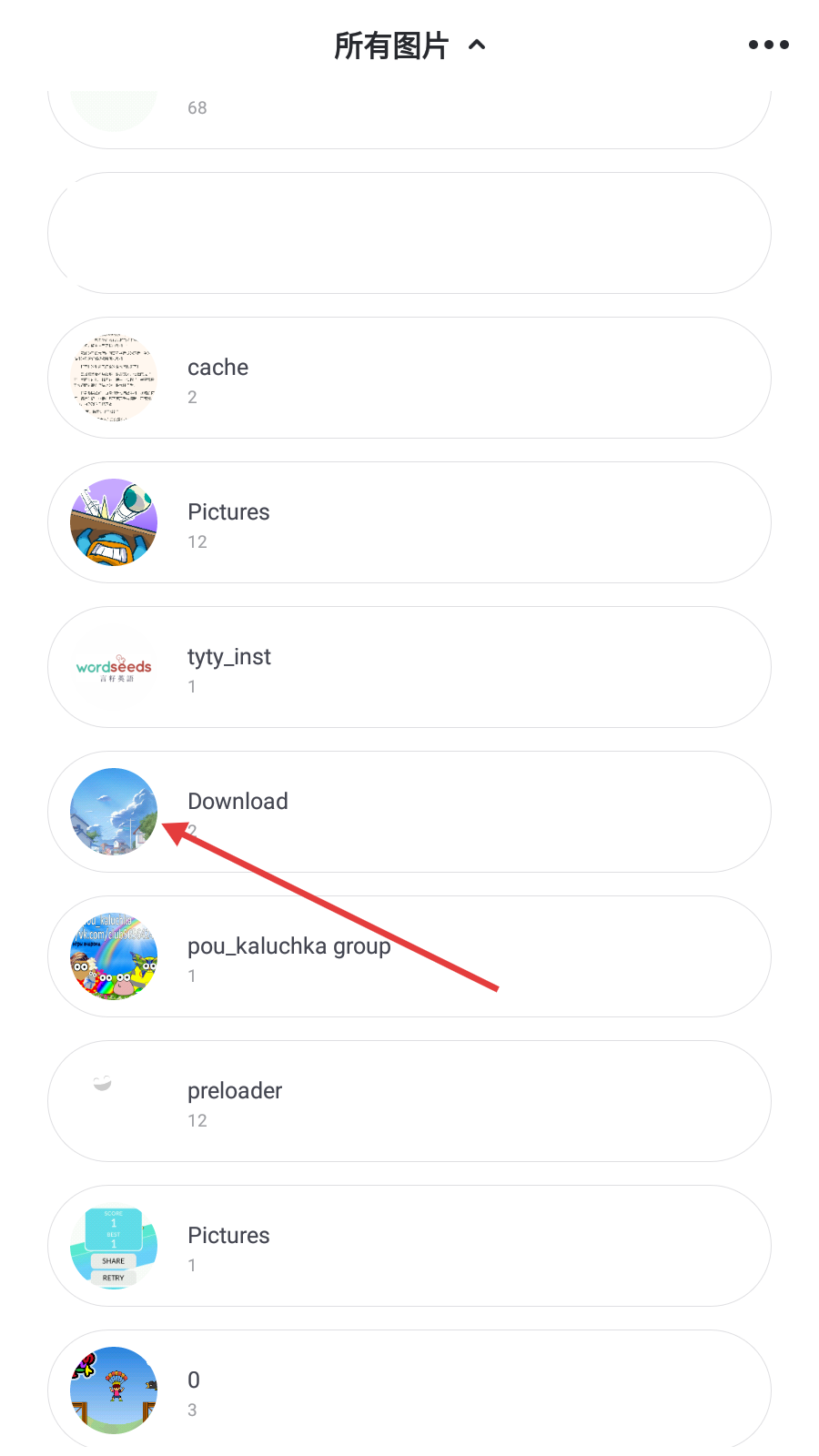 1、在图片分类列表中,找到【Download】文件夹并点击,可查看其中存储的图片。