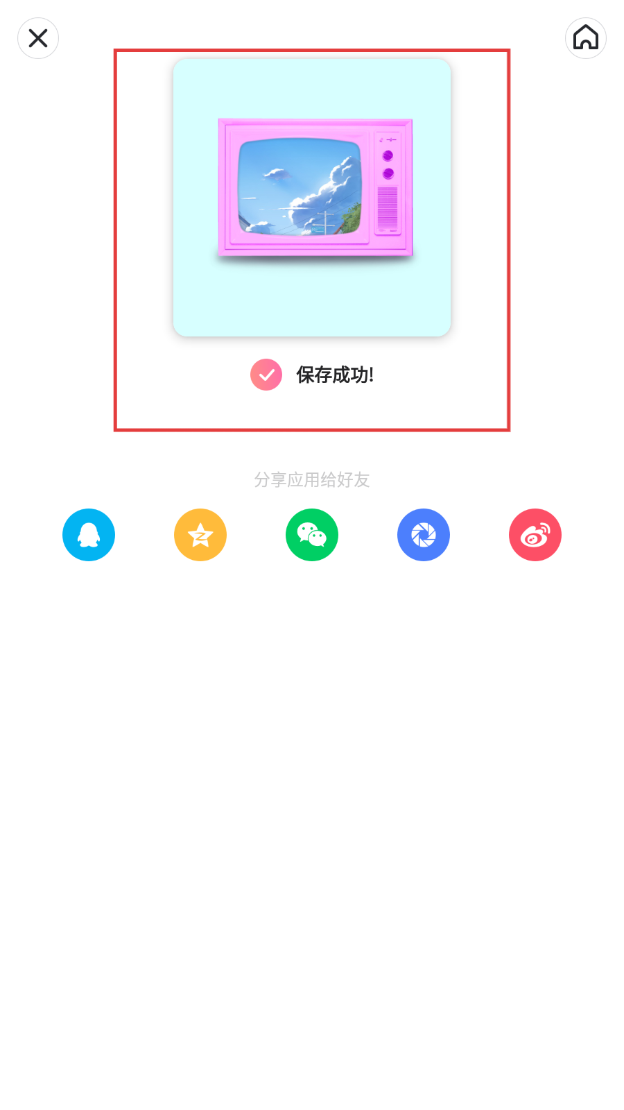 4、点击下载后,会显示【保存成功!】提示,此时图片已成功保存,还可选择分享应用给好友。