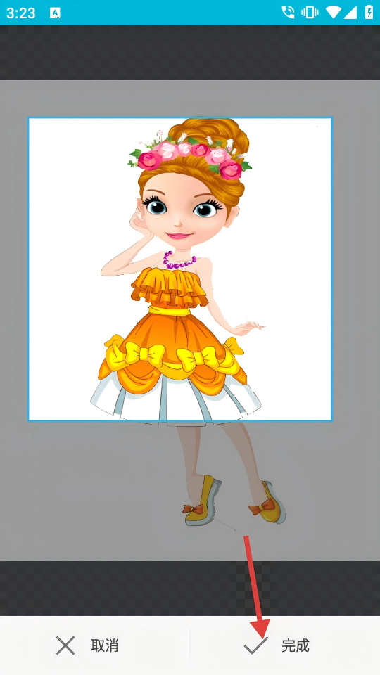 3、抠图时选好区域后,点击【完成】按钮确认抠图操作,以便进行后续编辑或保存。