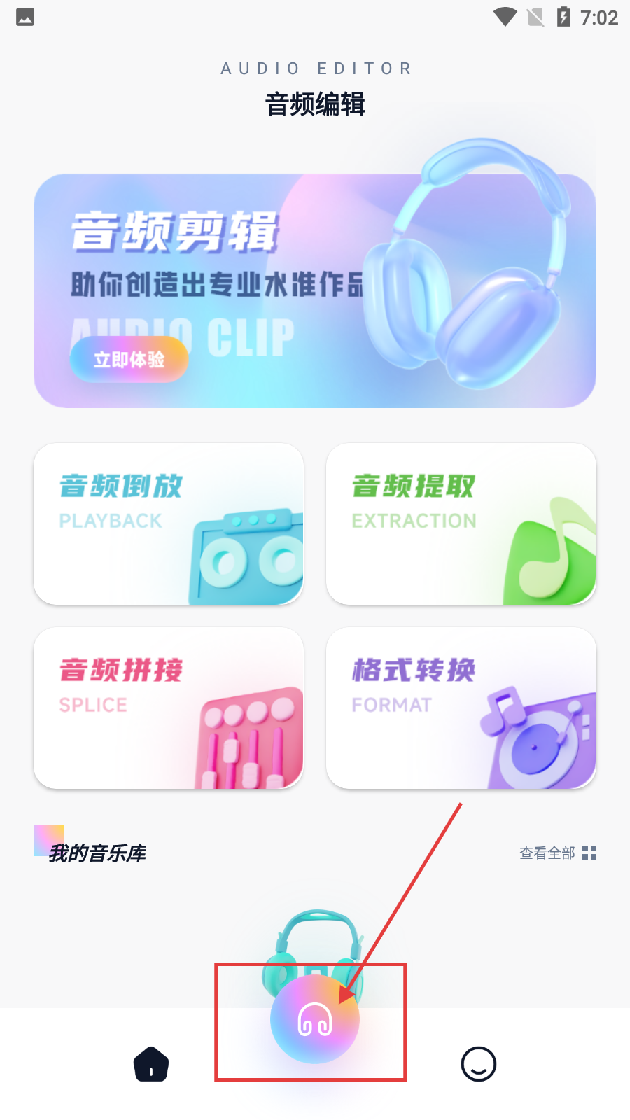 2、在音频编辑主界面点击底部【音频编辑】图标,进入白噪声选择页面。