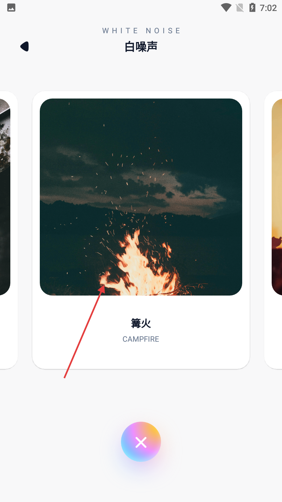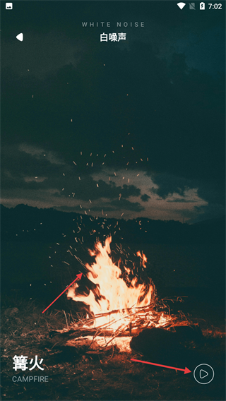 3、在白噪声选择页面点击【篝火】选项,进入篝火白噪声播放界面。