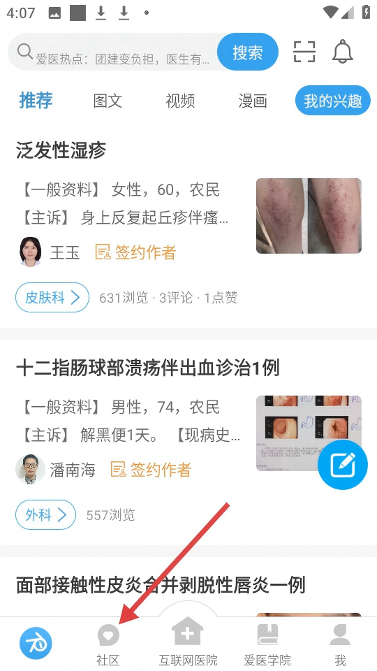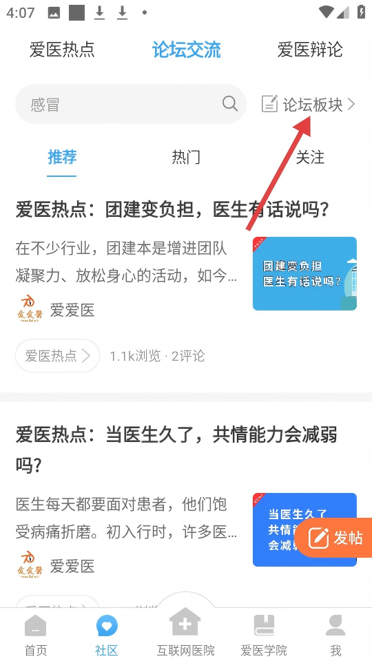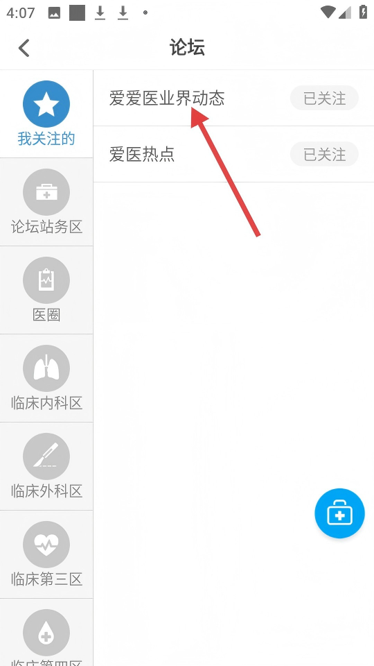 3、在论坛页面点击【爱爱医业界动态】可进入其板块。