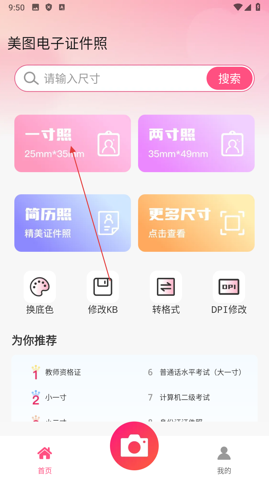 1、热门推荐功能实时推送证件照,帮助用户快捷发现多种热门规格,无需繁琐查找就能找到所需尺寸,提升制作效率。