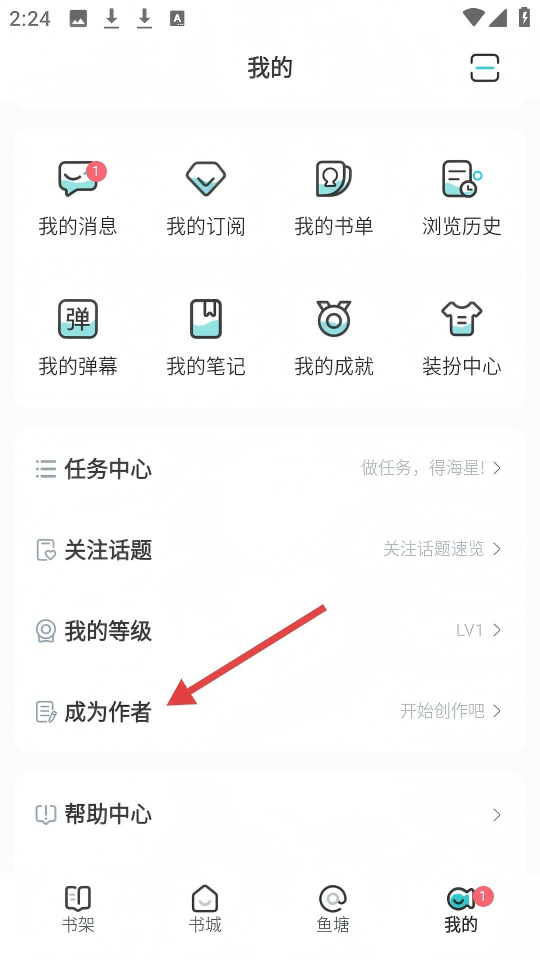 2、在个人中心页面,点击【成为作者】开始创作流程。