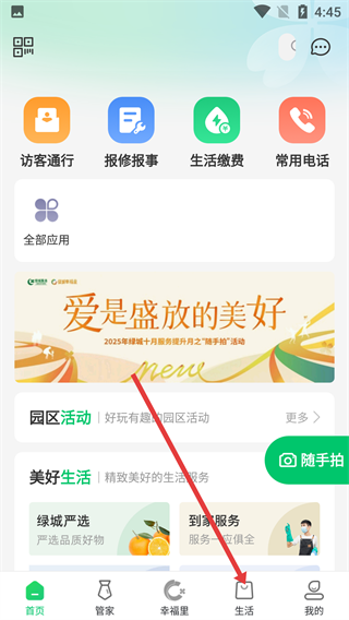 绿城生活是绿城物业打造的智慧园区综合服务工具,依托移动互联技术覆盖全国绿城社区,将基础物业、生活服务与邻里社交等功能整合为一体,它打破传统园区服务局限,支持在线缴纳物业费、一键提交报修、管理快递等基础服务,还整合家政、生鲜配送、园区超市等生活配套,更搭建友邻交流与业主自治平台。