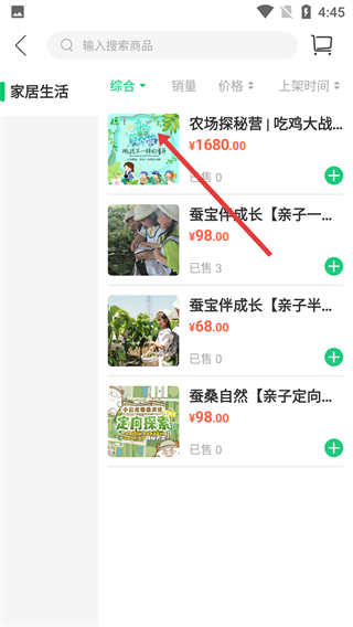 3、在商品列表中点击【农场探秘营|吃鸡大战...】商品,进入商品详情页面。