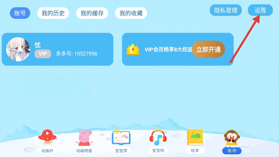 1、在【我的】页面,点击右上角【设置】按钮可进入设置界面。