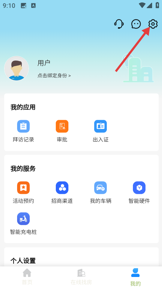 2、在个人中心页面,点击右上角设置图标,可进入设置页面。