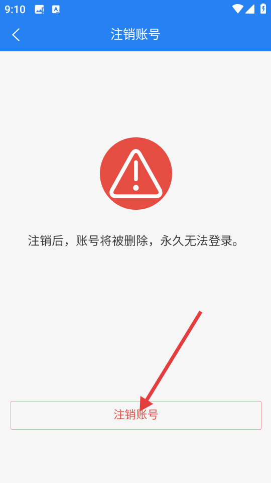 4、在注销账号提示页面,点击【注销账号】按钮,可完成账号注销操作。