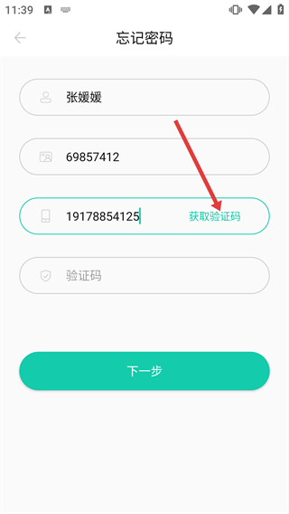 3、填写完成后点击【获取验证码】,输入收到的验证码。