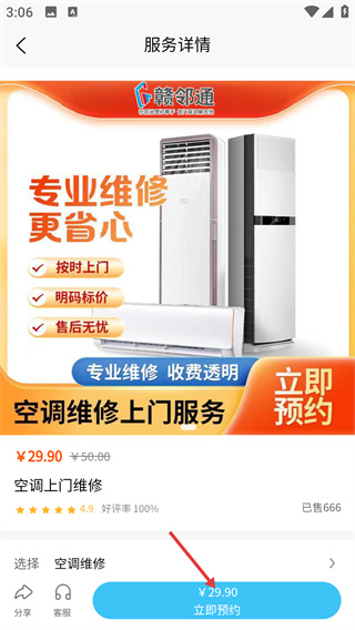2、在服务列表页选择【空调维修上门服务】,进入服务详情页。