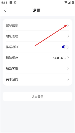 2、在设置页面点击【账号信息】,进入账号信息页面。