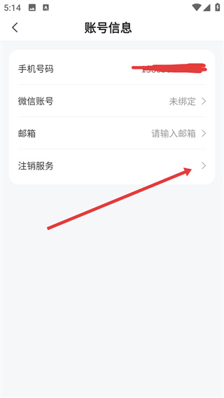 3、在账号信息页面点击【注销服务】,进入注销服务说明页面。