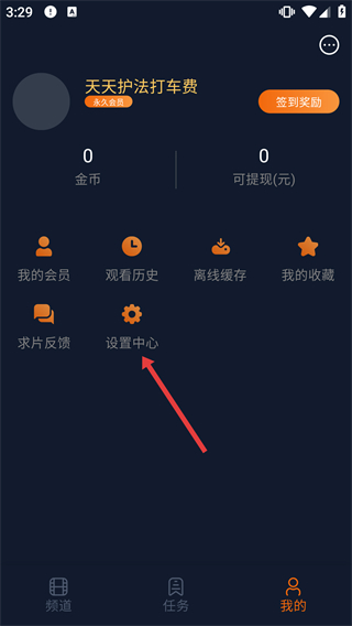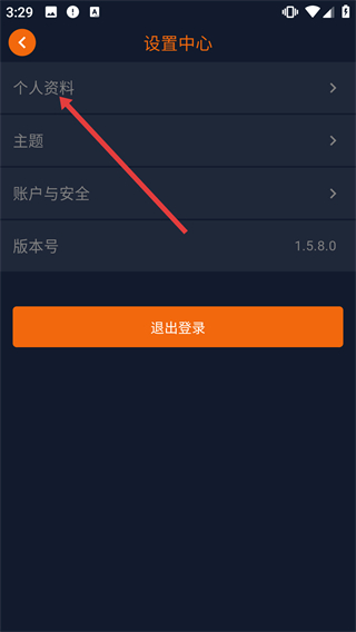 2、在个人页面点击【设置中心】,进入设置页面,包含个人资料、主题等选项。