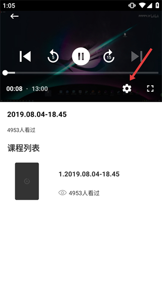 3、进入课程播放界面后,点击设置图标,展开播放设置选项。