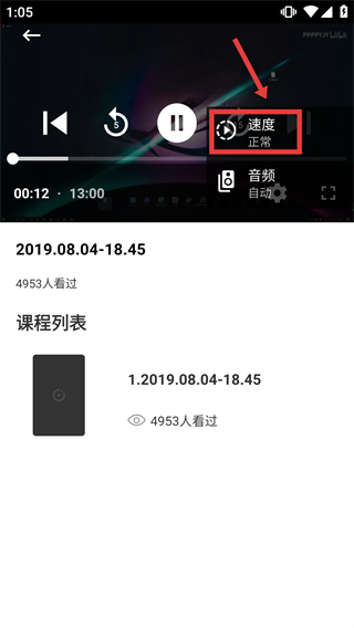 4、在播放设置中,找到【速度】选项,可调整课程播放速度,满足不同学习节奏需求。