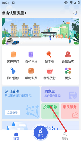 1、打开物业APP,点击右下角【我的】,进入个人页面,可查看房屋管理等功能选项。