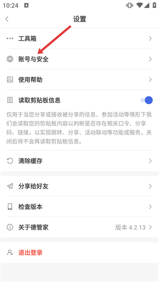 3、在设置界面,点击【账号与安全】,进入账号安全管理页面。