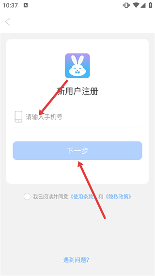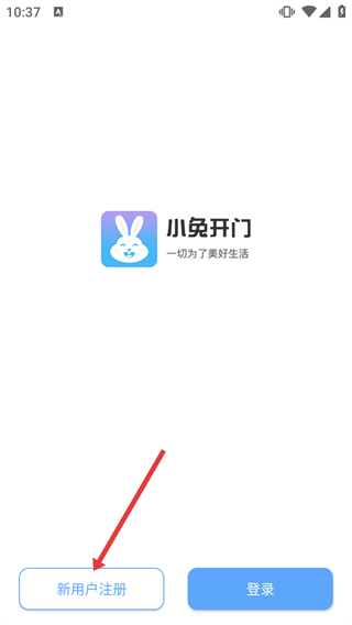 1、打开【小兔开门】APP,点击【新用户注册】,进入注册流程,开始账号注册操作。